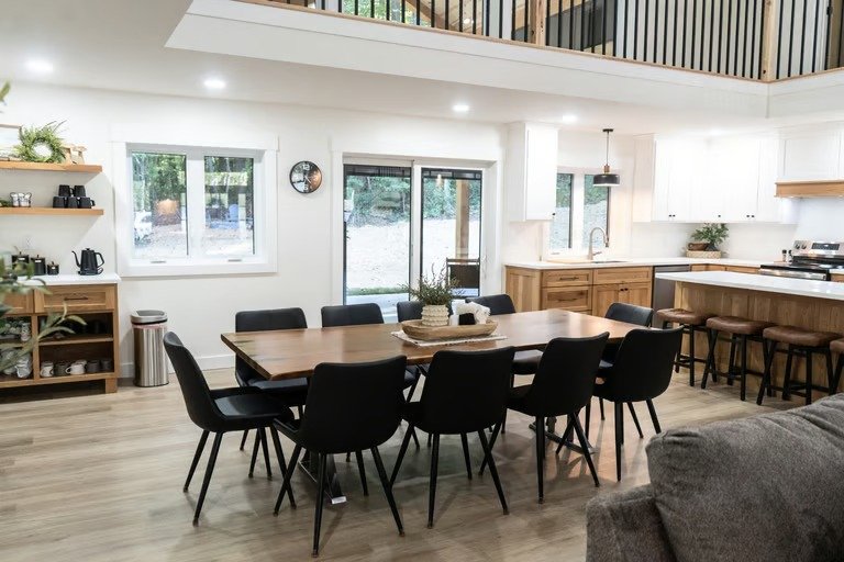 Timber Cove is a family-friendly house with 4 bedrooms and 3 full baths. It is a new build, completed in September, 2025. This open floor plan vacation house is secluded and private. We welcome families with children.